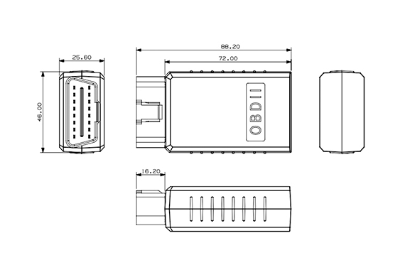 ● Materials of OBD2connector and enclosure comply with REACH and Rohs standards.