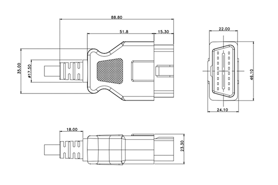 ●PVC, PUR and customized cable jacked for YH1004-1 obd2 male soldered connector are available.